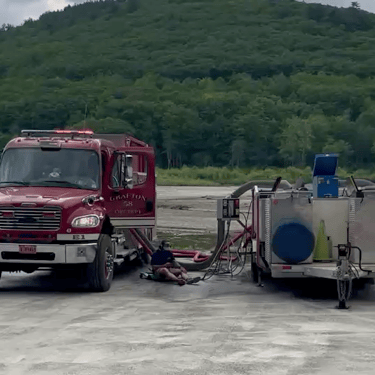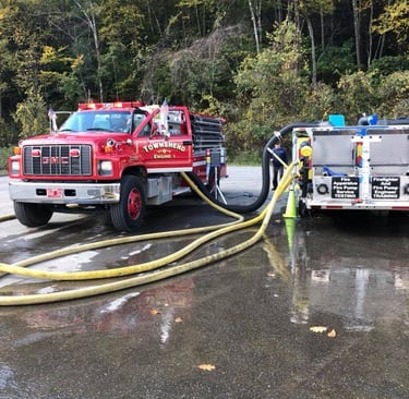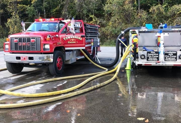 Townshend Engine 4 and Grafton Fire Department Engine undergoing pump testing at Townshend Dame